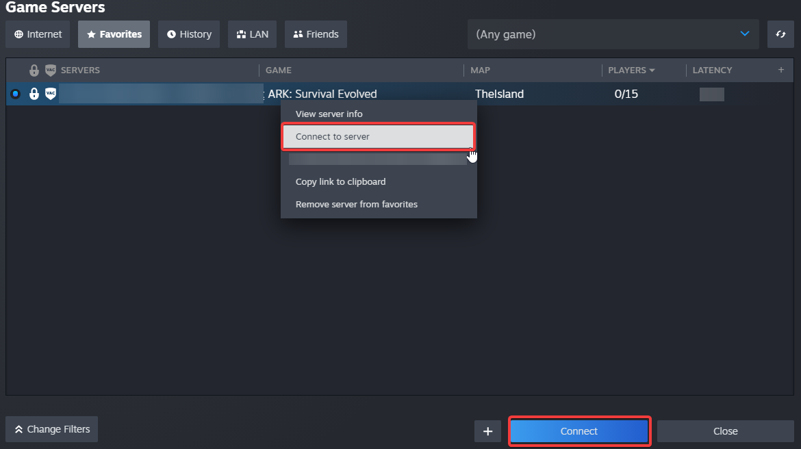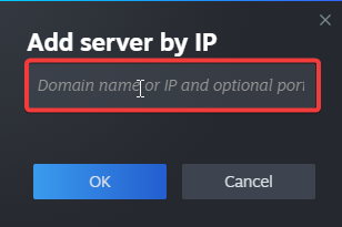 Copy and paste your server's IP and Query Port and click "OK".